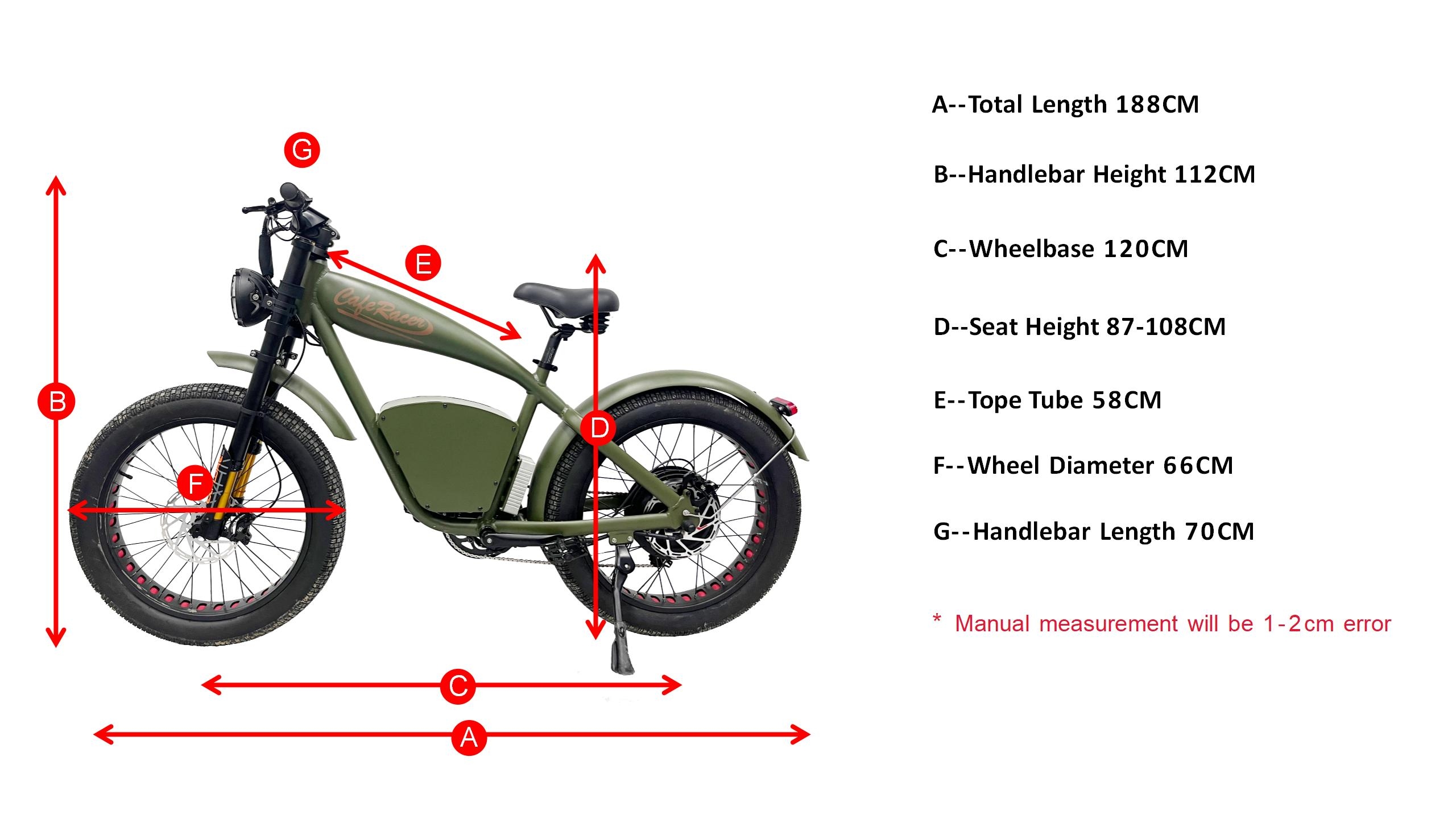 Cafe Racer-our 2000W Vintage fat tire electric bike redefines off-road cycling with its powerful 2000W brushless motor and rugged 24×4.0 inch tires. This high-performance vintage electric bicycle delivers exceptional torque to conquer 45° inclines while maintaining speeds up to 35mph (60km/h). The advanced 52V 30Ah lithium-ion battery, riders can enjoy extended range of 25-35 miles per charge (depending on riding mode, rider weight and terrain).