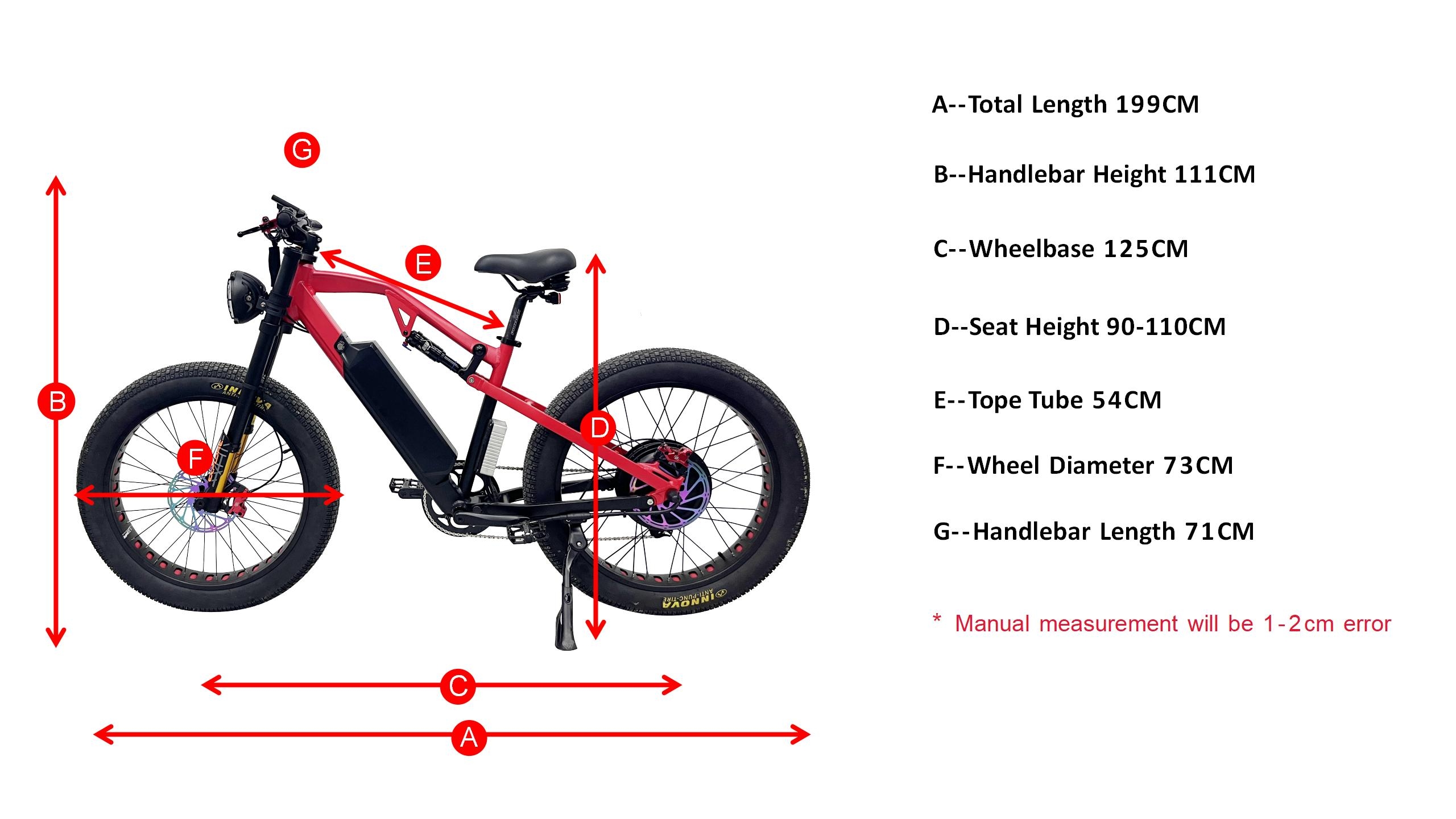 Introducing our premium 60v 2000w fat tire electric mountain bicycle (eMTB) designed for serious off-road adventures. This full suspension electric mountain bicycle features a striking red and black color scheme that exudes power and style on any terrain.